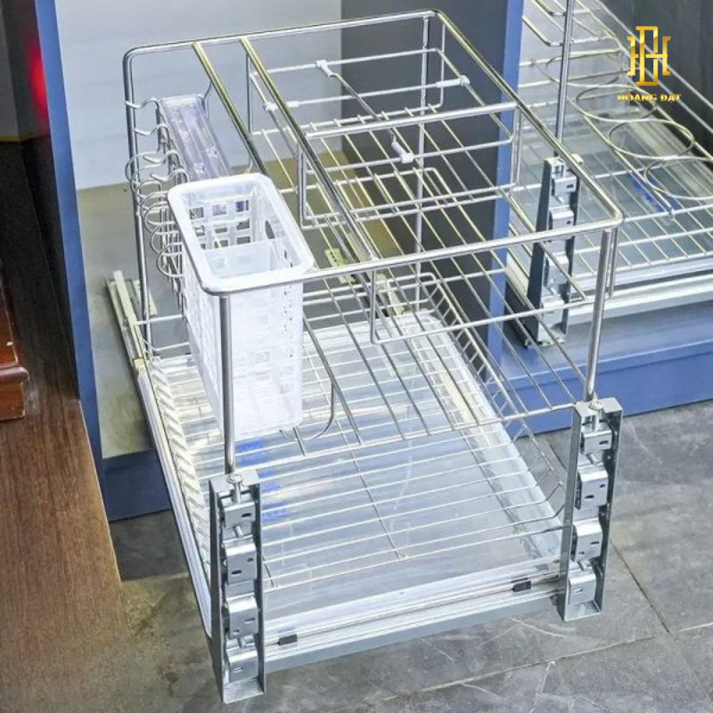 Điểm nổi bật của giá dao thớt inox 304 này chính là hệ thống ray âm giảm chấn cao cấp. Ray trượt hoạt động êm ái, giúp việc kéo ra đẩy vào trở nên nhẹ nhàng và không gây tiếng ồn. Điều này đặc biệt hữu ích khi sử dụng trong môi trường gia đình, nơi mà sự yên tĩnh luôn được coi trọng. Hơn nữa, hệ thống ray giảm chấn còn có khả năng chịu lực cao, giúp giá dao thớt có thể chứa đựng nhiều vật dụng mà vẫn đảm bảo hoạt động trơn tru.