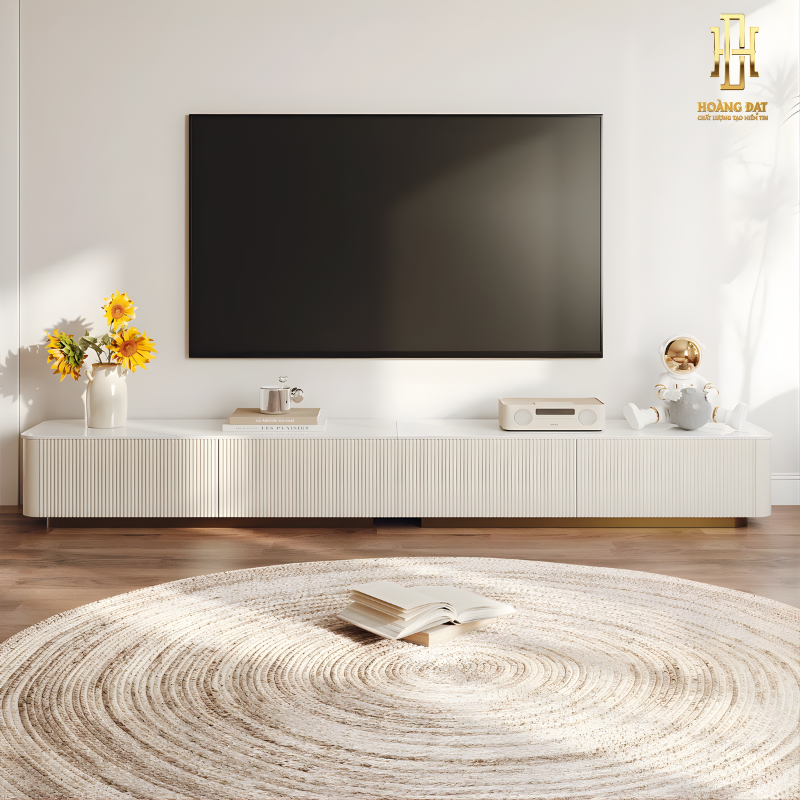 Phong cách hiện đại pha tối giản được thể hiện rõ qua đường nét gọn gàng. Tông màu sáng chủ đạo mang lại cảm giác sạch sẽ và thoáng đãng. Sản phẩm dễ phối với sàn gỗ, thảm trung tính và nội thất cùng tông. TV024 phù hợp căn hộ chung cư và không gian sống trẻ trung. Ngoài ra, Hoàng Đạt luôn hỗ trợ tư vấn, đo đạc và hoàn thiện 3D theo kích thước thực tế mà khách hàng mong muốn.