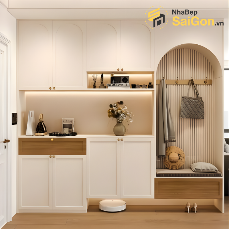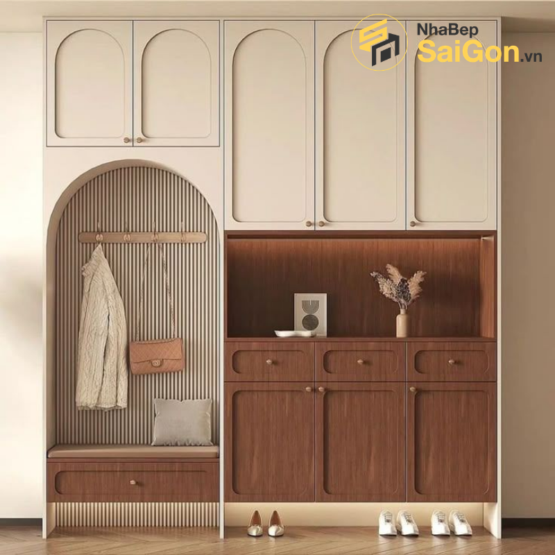 Chất liệu là yếu tố quan trọng quyết định đến độ bền và tính thẩm mỹ của tủ giày. Gỗ công nghiệp cao cấp với bề mặt phủ Melamine, Laminate hoặc Acrylic thường là lựa chọn tối ưu nhờ khả năng chống ẩm, chống trầy xước và dễ dàng vệ sinh. Hãy tham khảo ý kiến của chuyên gia hoặc nhân viên tư vấn để chọn được chất liệu phù hợp nhất.
