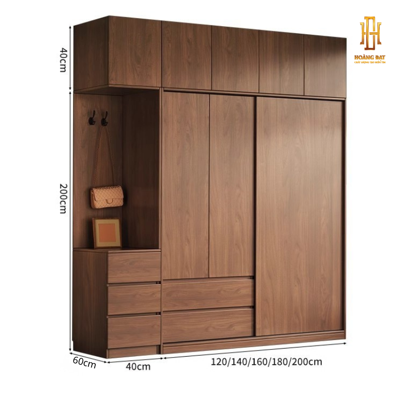 Tủ quần áo gỗ công nghiệp Hoàng Đạt - TQA012 có màu nâu gỗ óc chó đẹp mắt